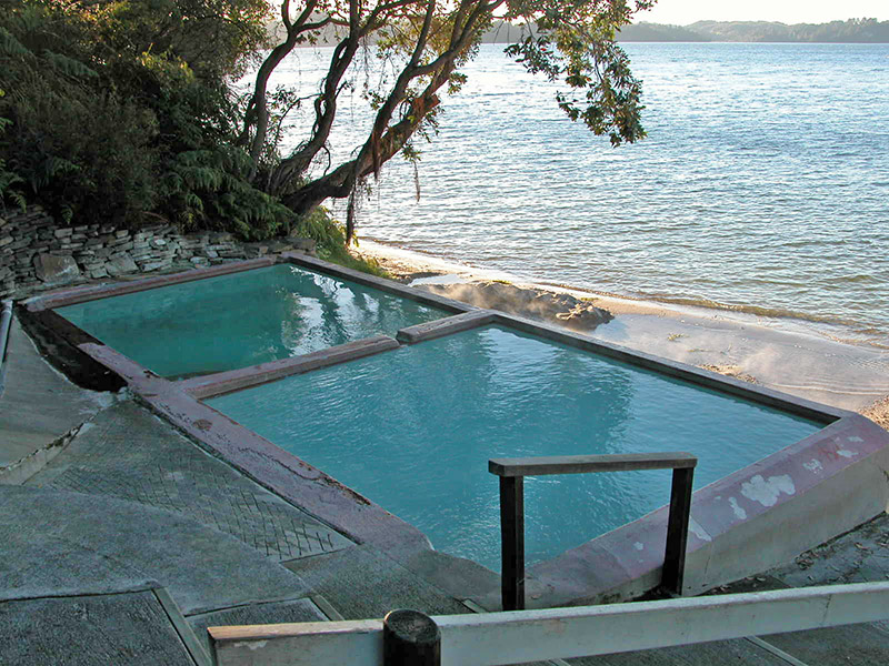 The lake deepens from west to east, changing from an average of 10 m deep to a maximum of 125m. Geothermal activity is centred around a deep lake vent in the eastern portion of Lake Rotoiti known as Centre Basin. The basin has formed where margin of the Haroharo Caldera crosses the lake from Ruato bay to Puketapu Point. The eastern arm of Lake Rotoiti occupies the caldera moat.
