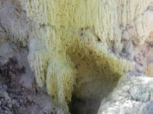 Surface features in the area are characterised by waters perched in the Rotoiti breccia are heated by steam containing carbon dioxide, hydrogen sulphide and ammonia. Features emerge from altered breccia and white to grey sinters. Waters range from clear to brown/black emerging at temperatures up to 98°C. There are areas of active steaming ground with sulphur, solfatara, silica residues, weak acid springs (Cody, 2007), and hydrogen sulphide gas detected in the west.