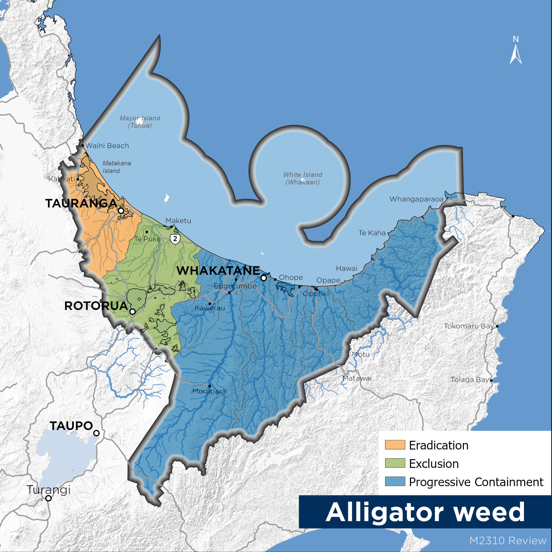 There are several known sites in the Bay of Plenty where alligator weed is being actively managed. These include the Rangitāiki River and terrestrial sites in Tauranga, Ōpōtiki and the East Cape area.