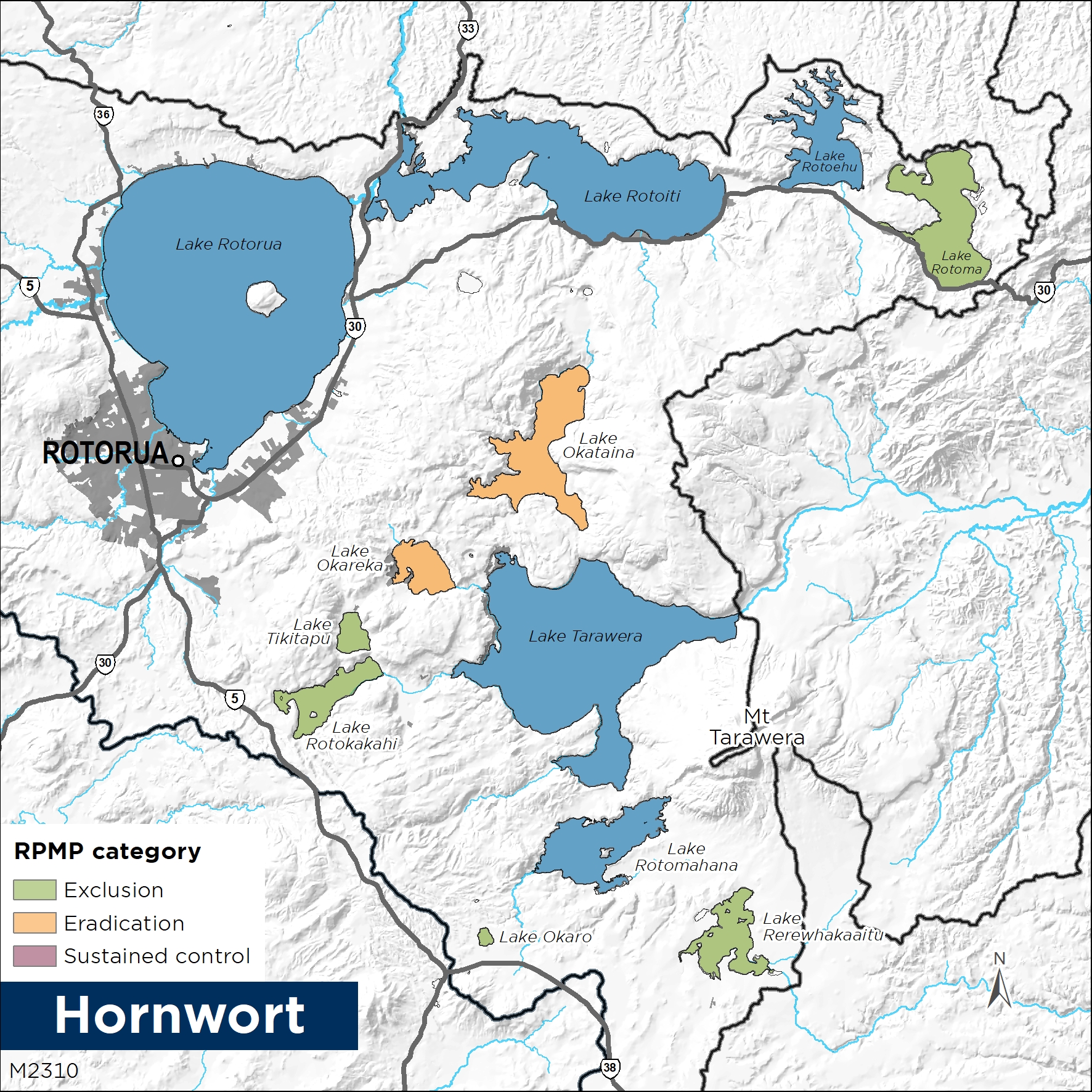 - Free floating mats of hornwort can grow to such large sizes that they completely shade out entire areas of lakes, inhibiting growth of native flora and fauna. Shallow lakes such as Lake Rotoehu are prime candidates for such exponential growth.