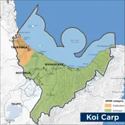Koi carp is an exclusion pest. This means that it is not yet established in this area of the Bay of Plenty region. Bay of Plenty Regional Council is responsible for managing new incursions into the region.