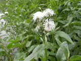 - Clover-like fragrant flowerheads (November to May) with many thin white 'petals' (florets), followed by yellow-brown seeds (5mm diameter).