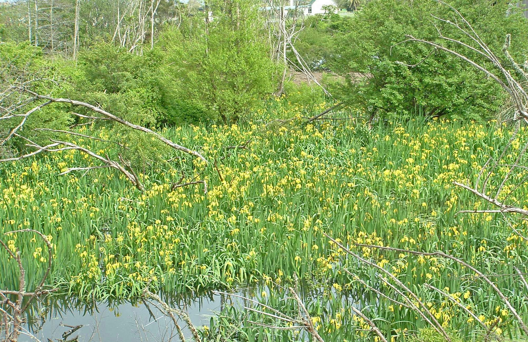 - Yellow flag iris is semi aquatic and can be found along streams, rivers, drains, swampy ground, ponds, lakes and sometimes in gardens.