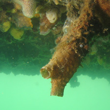 - A sea squirt with a long, club shaped body up to 160mm long, on a tough stalk.