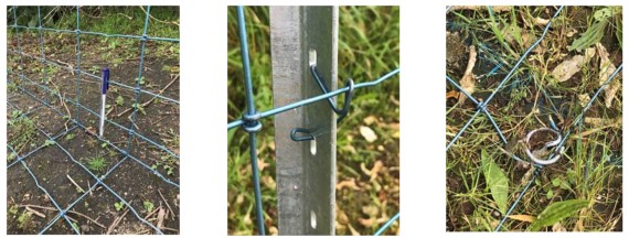 The fencing being used is the same height as a standard farm fence but is made of Waratah netting and an additional 30cm section is pegged flat on the ground to stop wallaby pushing under the fence. The Waratah fencing system is all steel and it can be erected very quickly.