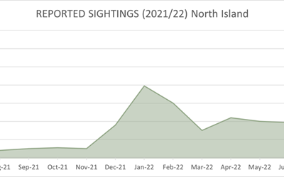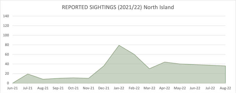 The number of reports of wallaby sightings across the country has steadily grown over the last year as people become more aware of both the presence of wallabies and the negative impacts they cause. Here in the North Island, the number of reported sightings has also been increasing.
