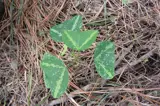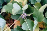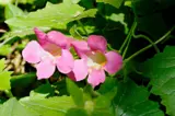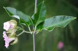 Scrambling vine with thin, soft, glossy, hairless leaves that are ivy-shaped.