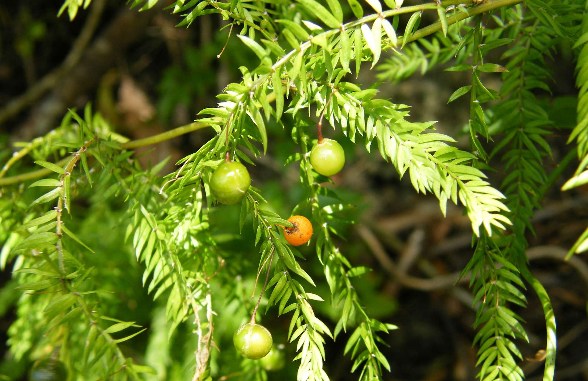 - Tiny white flowers appear from September to December, followed from October to February by round berries (8mm in diameter) that ripen from green to orange-red and contain 1-2 seeds each.