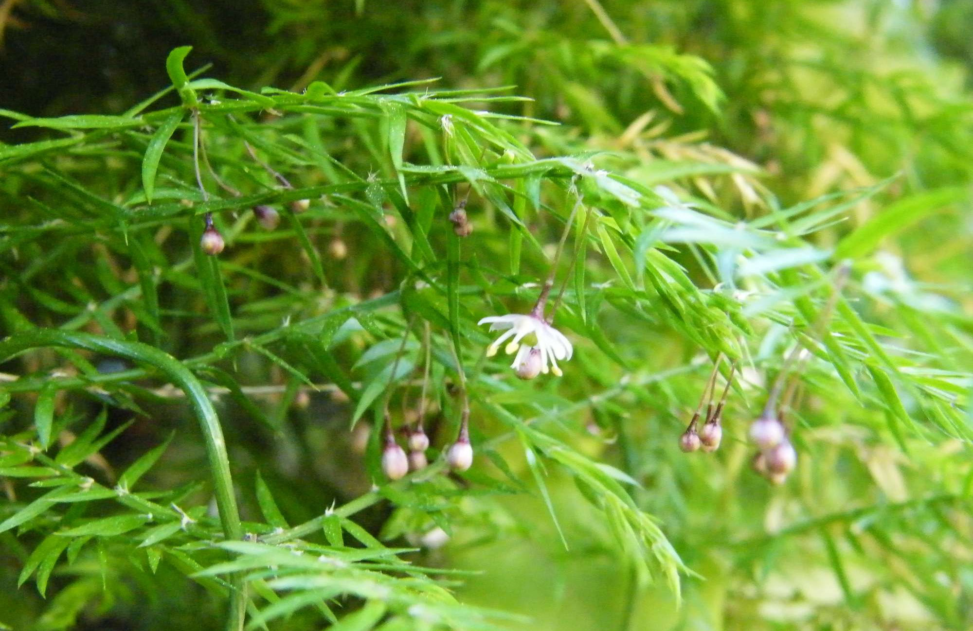 - It is very similar to bushy asparagus; however, bushy asparagus has larger, spiny leaves and thicker stems.