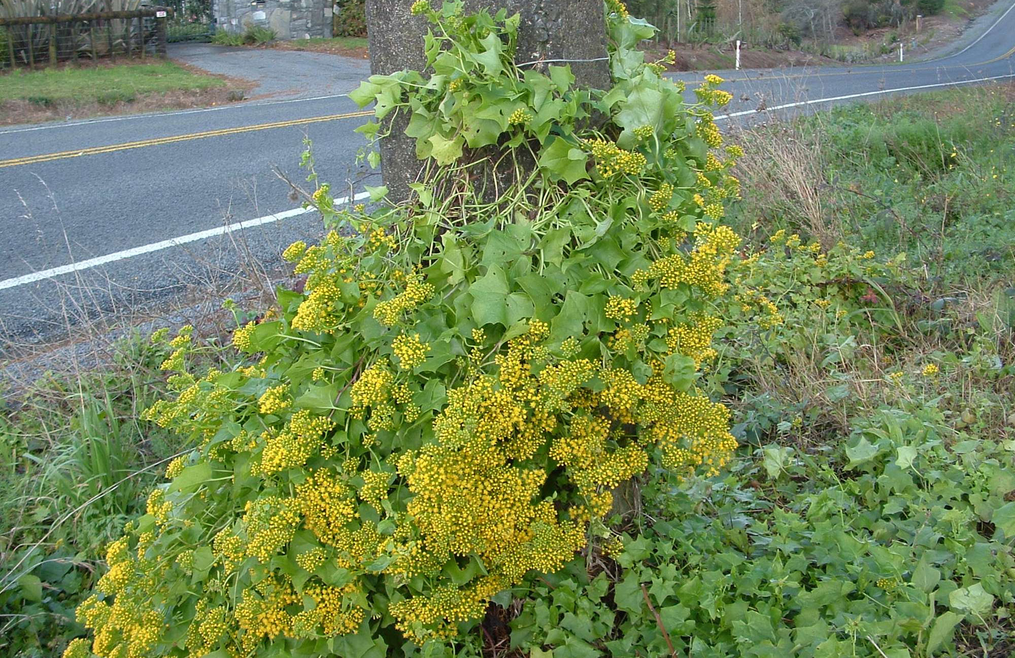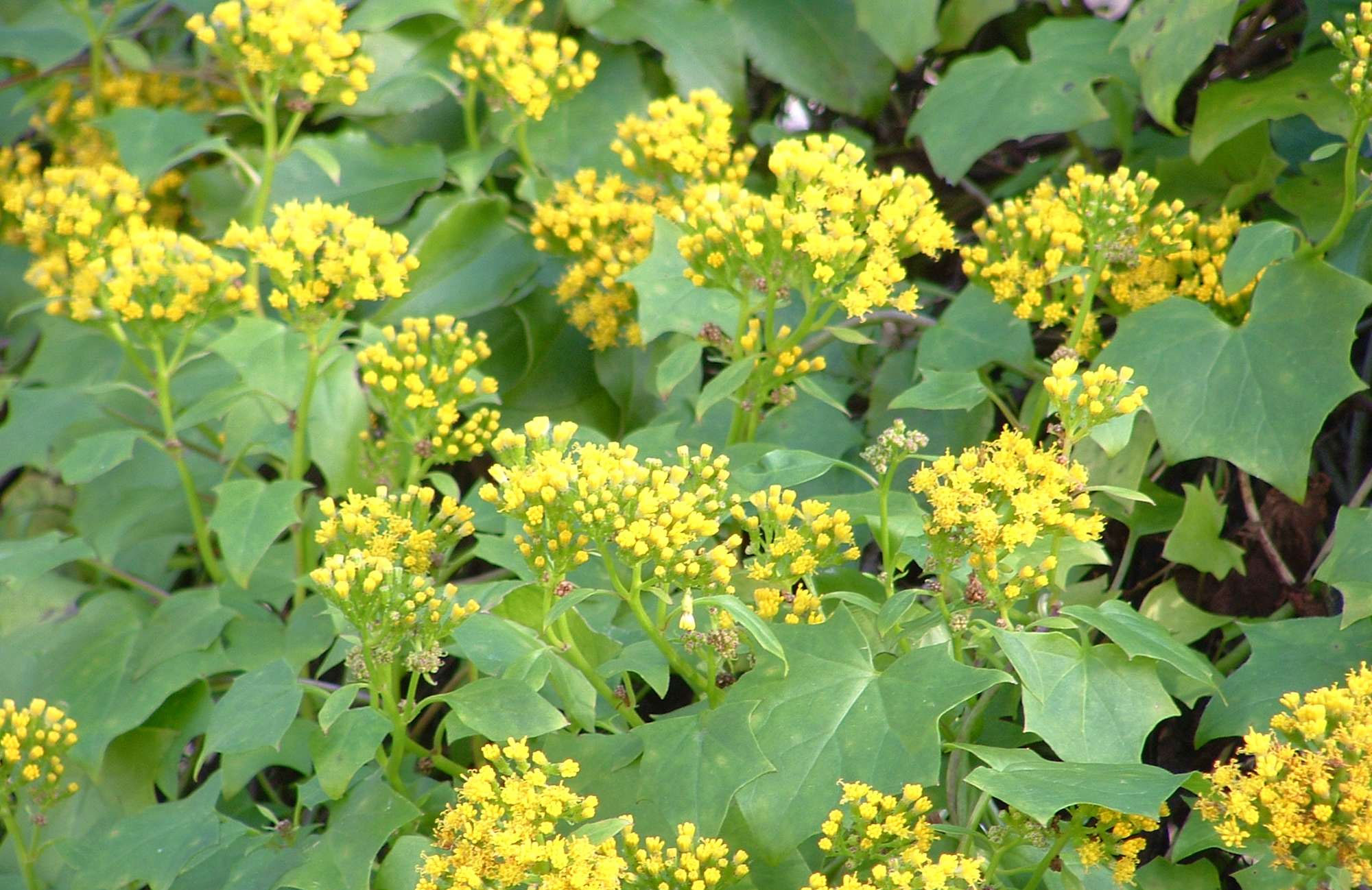 - Scrambling vine from the same family as ragwort with thin, weak stems.