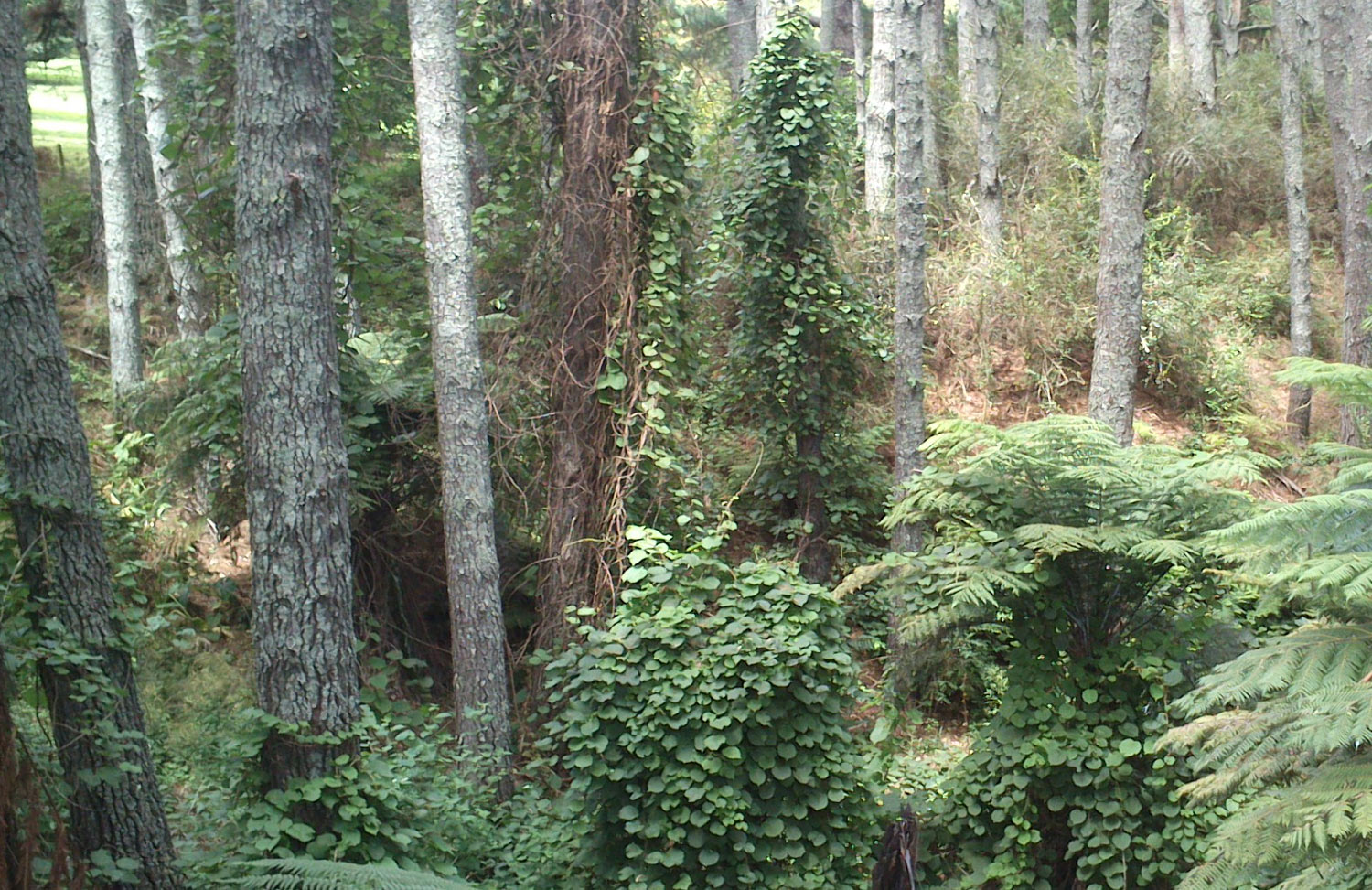 - The smothered plants beneath the kiwifruit vines are shaded and may break under the weight of the vines.