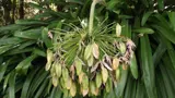 - Attractive blue or white flowers form umbrella-shaped clusters of small flowers December to February. These are followed by thin, papery, black seeds.