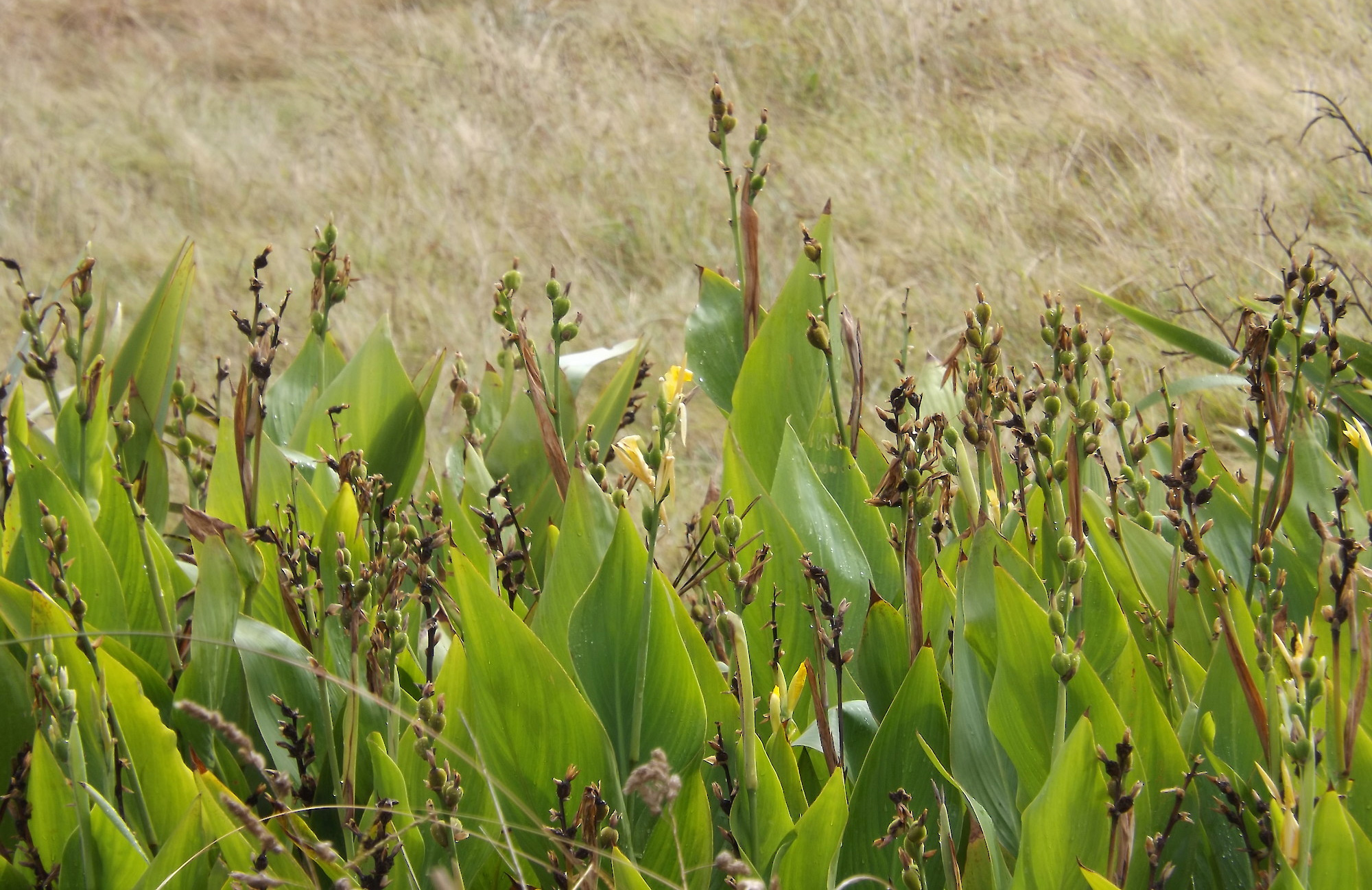 - An erect, leafy perennial herb (less than 2m tall) with thick underground stems (rhizomes) and sturdy, unbranched, green and hairless above-ground stems from which large, green (sometimes purple tinged) oblong leaves grow.