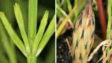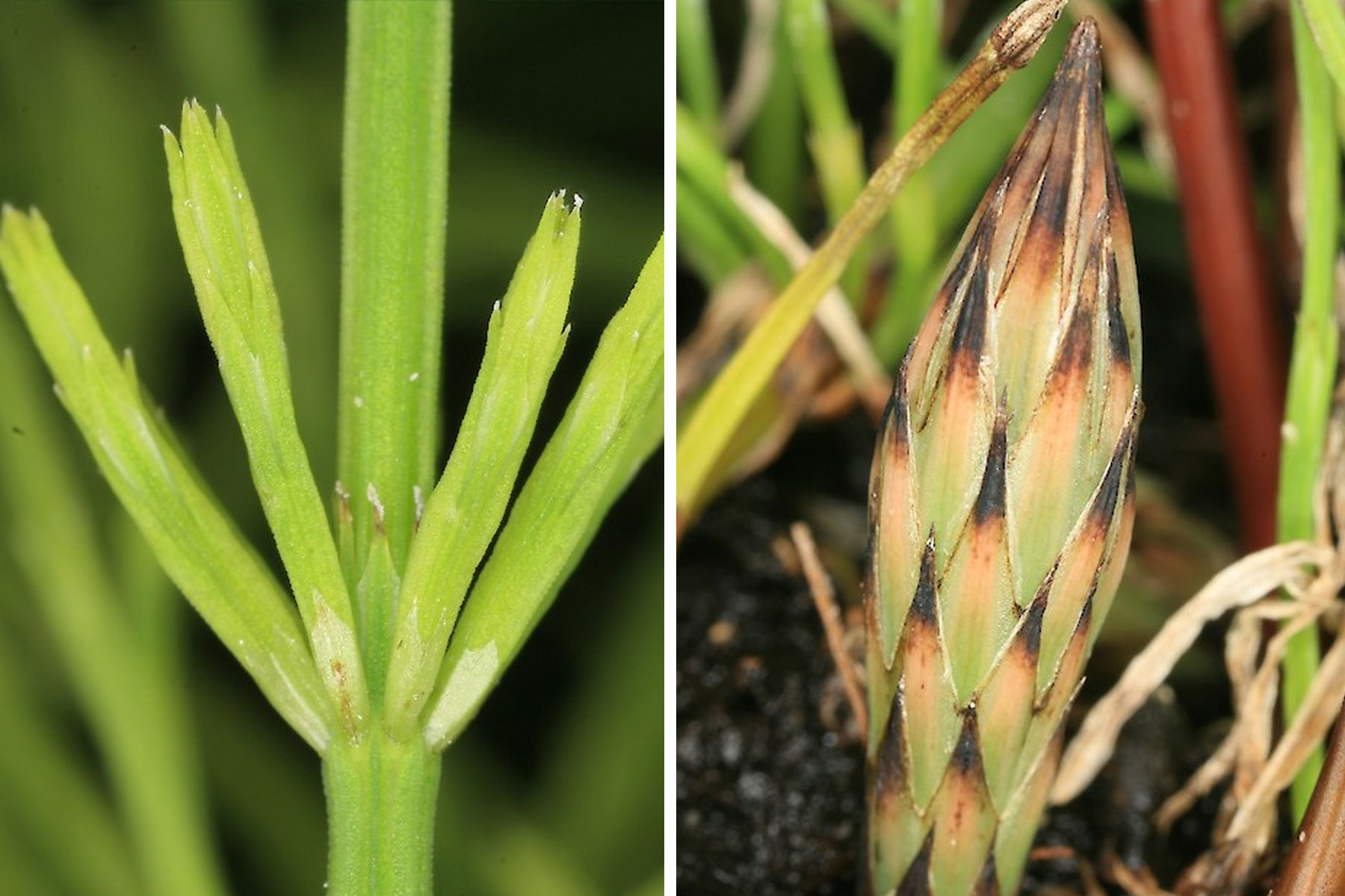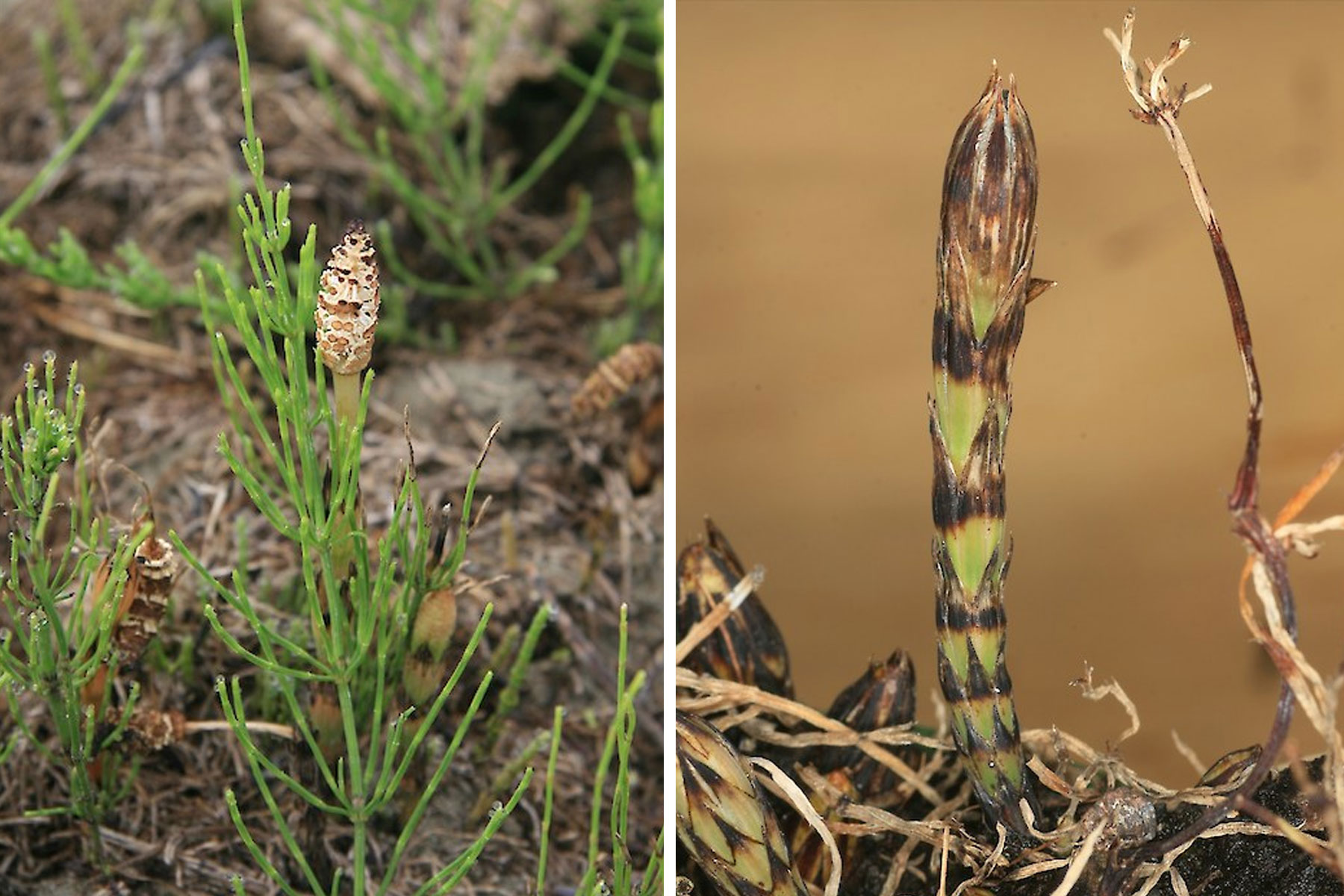 - Sterile stems start to grow after the fertile stems have wilted and persist through summer until the first autumn frosts. They are green, very rough to touch and resemble pine seedlings.