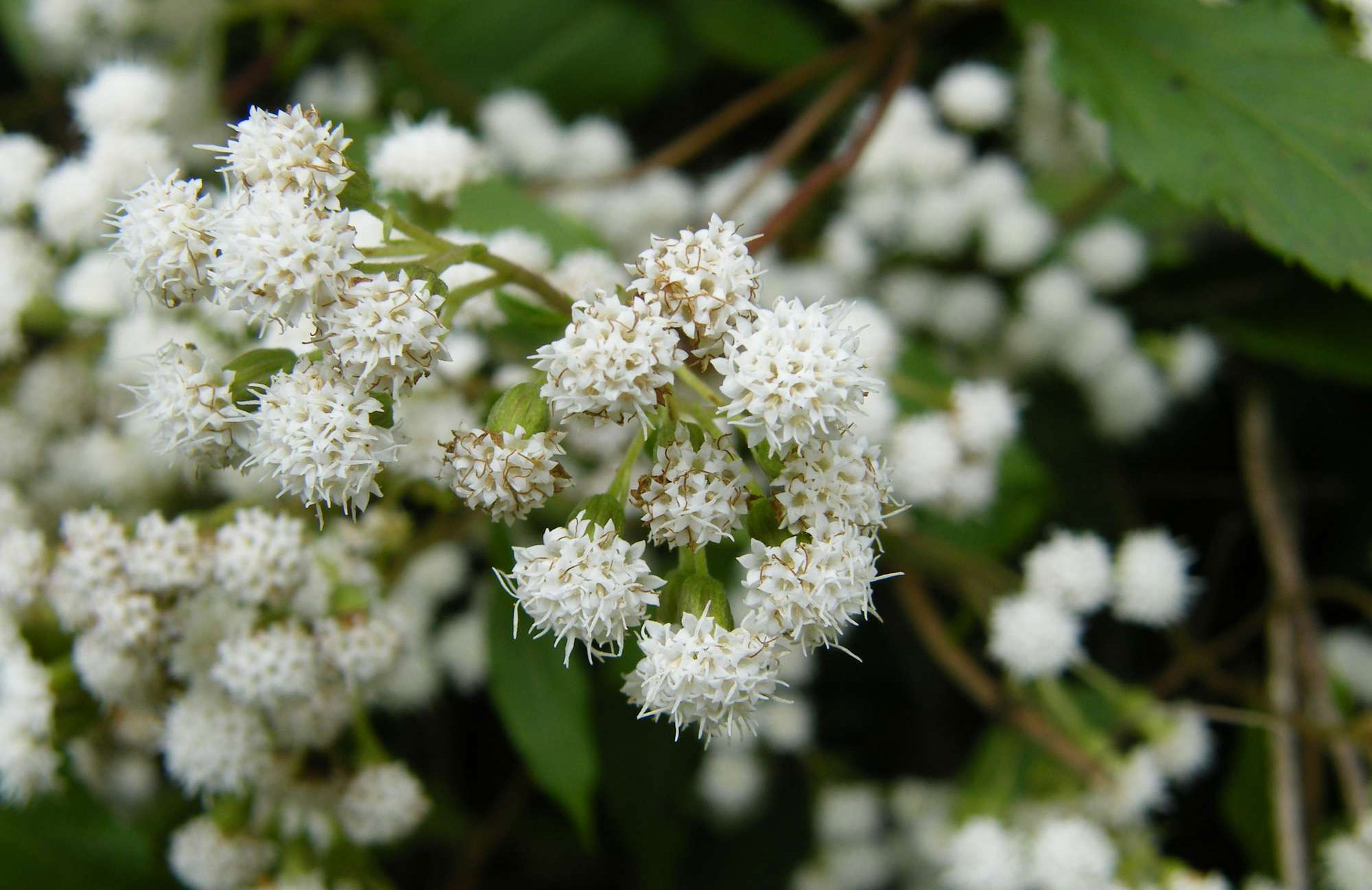 - Clusters of small white flowers (August to January) are followed by black 5-angled seeds.