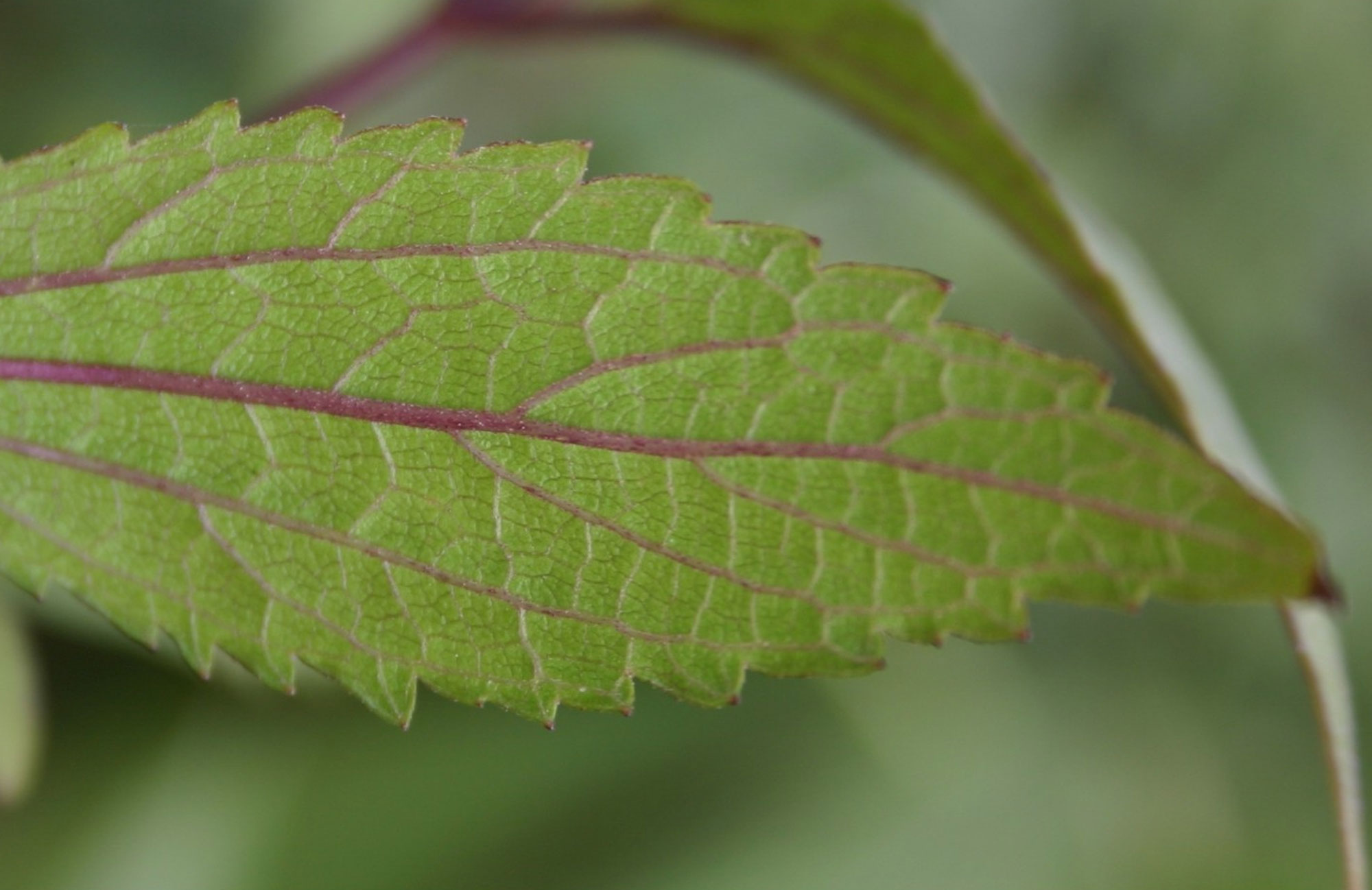 - Stems are usually purple and are covered in purple-striped non-sticky hairs, become woody with age and occasionally die back in winter.