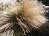 - Dense tussock perennial grass with fine, wiry leaves which are rough to the touch.