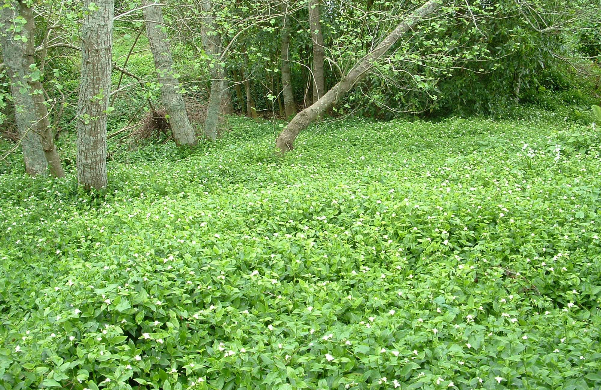 Tradescantia thrives in forest, gardens, scrub and forest margins, cliffs, bluffs, and riverbed/streamside environments and downstream or adjacent to existing infestations. It is widespread in the Bay of Plenty.