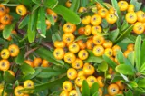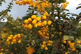 Evergreen, spiny shrub which spreads to form dense thickets and produces orange berries.