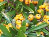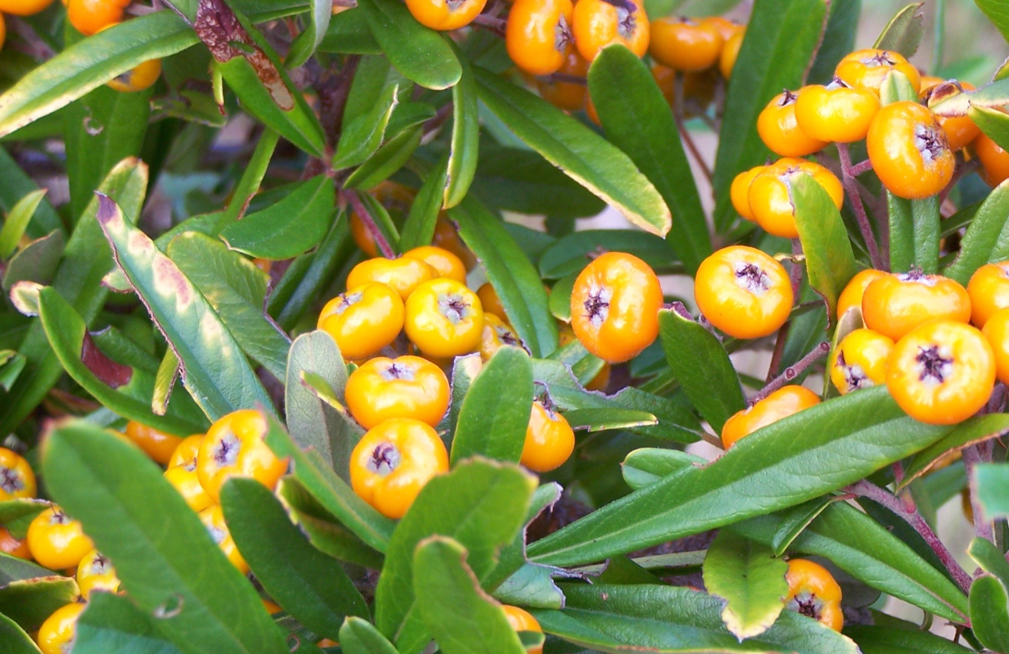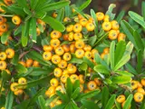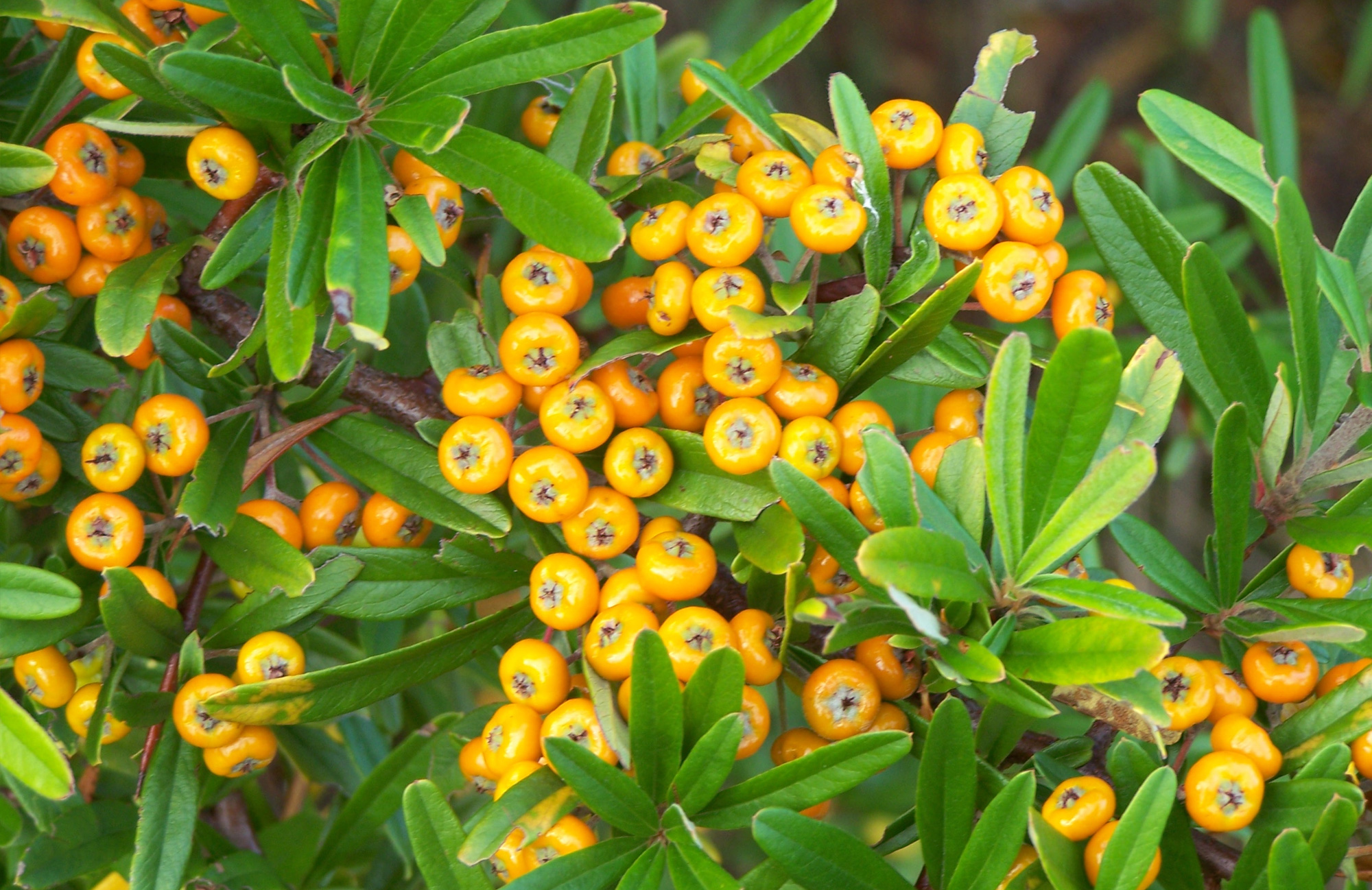 - Many small white flowers in dense clusters appear from (December to January) followed by glossy orange berries (April to August).
