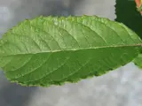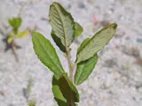 - Buds are reddish, and oval shaped serrated leaves are shiny on top and grey or bluish with dense, soft, grey hairs underneath which are arranged alternately on the stem.