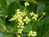 - Greenish flowers are insignificant and in clusters of five to many.