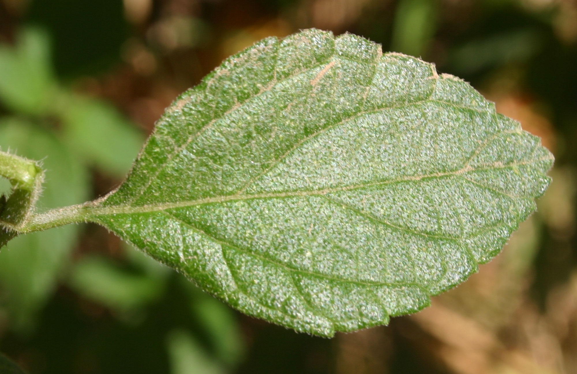 - Serrated oval leaves 5-8 cm long, usually covered in rough hairs and a strong odour when crushed.