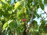 - Fruit is red in colour and glossy. Quite small, about 10mm in diameter.