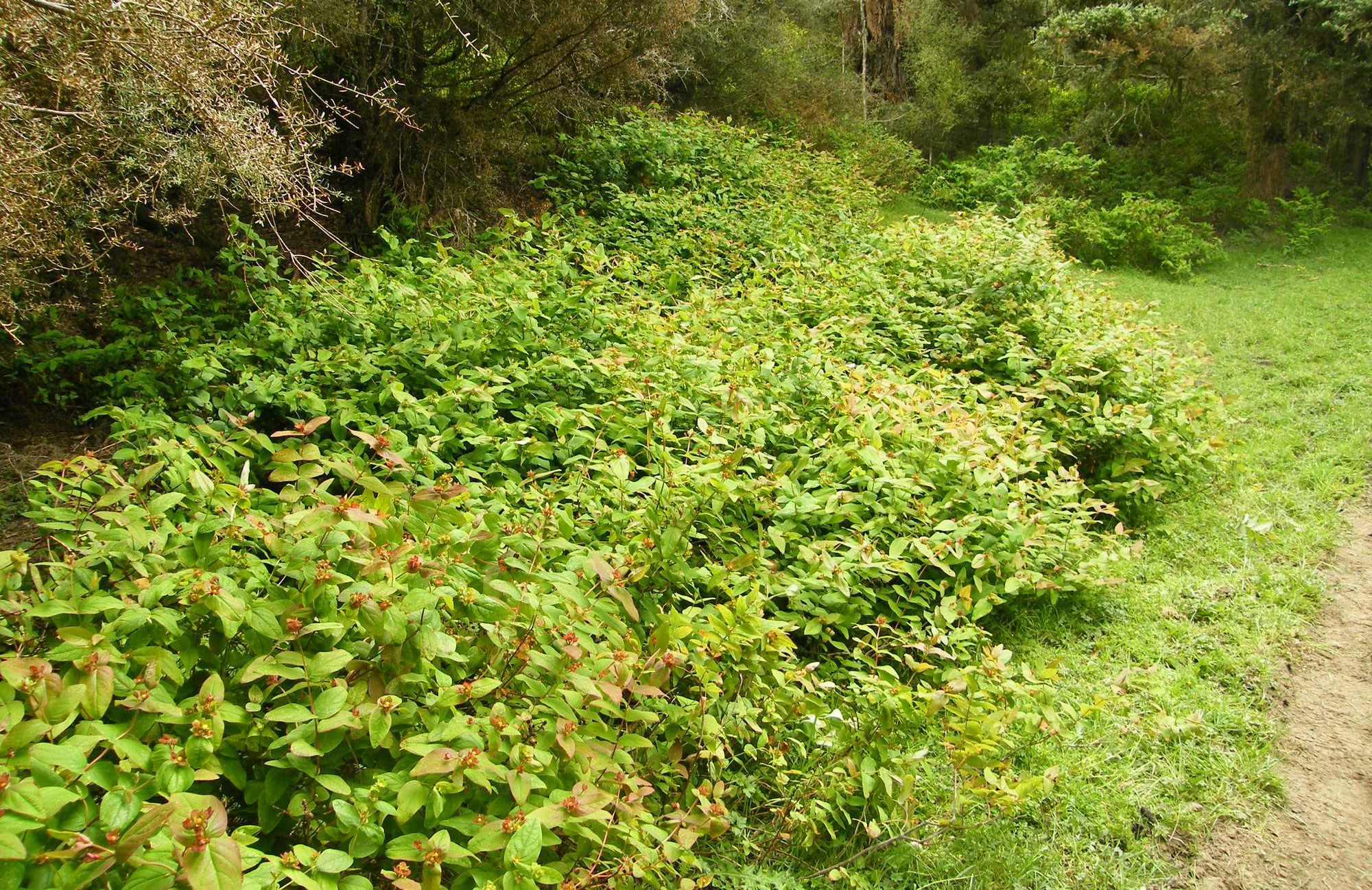 Tutsan is scattered in the Bay of Plenty. It prefers high rainfall areas and is found in disturbed forest and shrubland areas, roadsides, stream beds, riparian margins, tussockland, bare land.