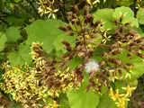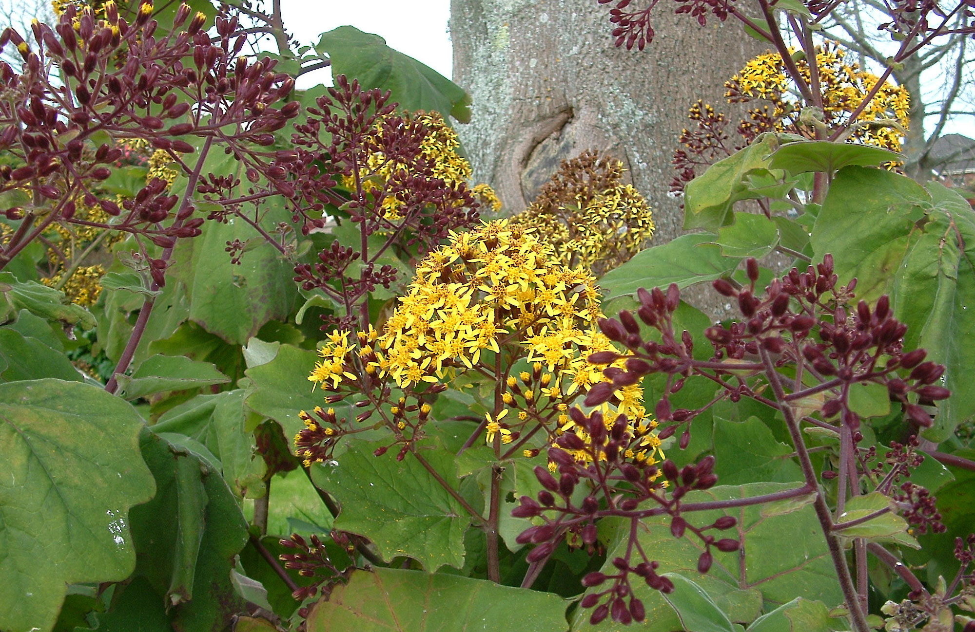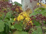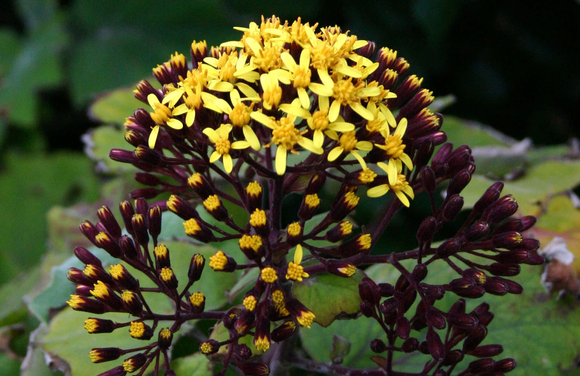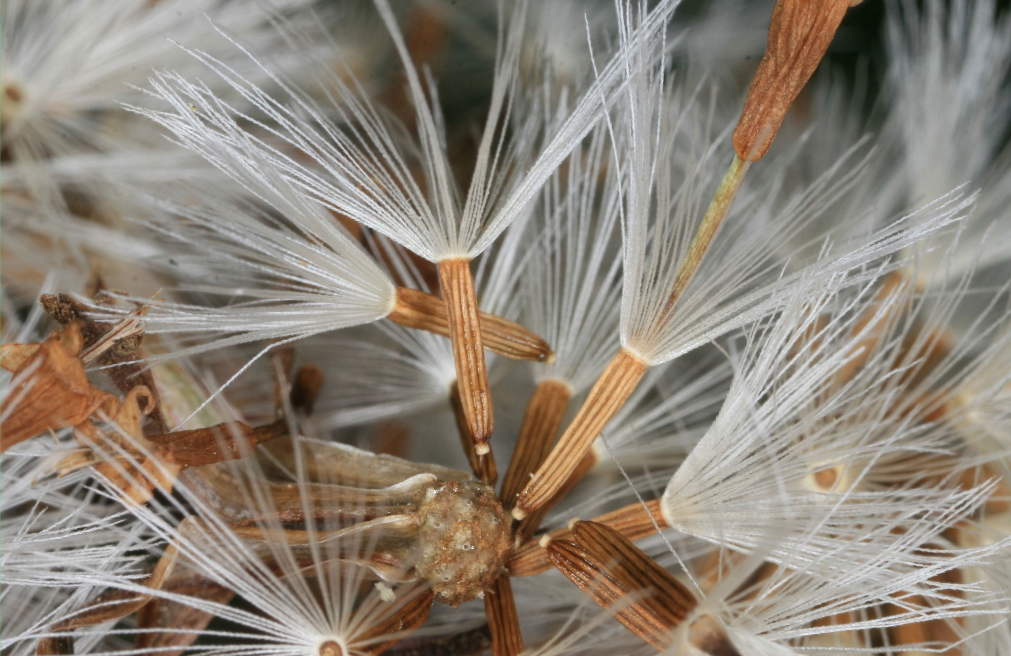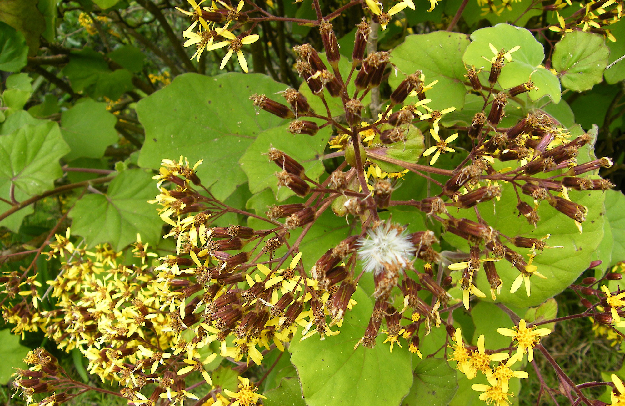 - Has bunches of small yellow daisy-like flowers (July to November) followed by puffy white seeds.