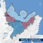 Woolly nightshade is both a Progressive Containment and Sustained Control species. Please see the map to determine which rules apply to your area.