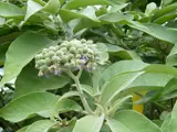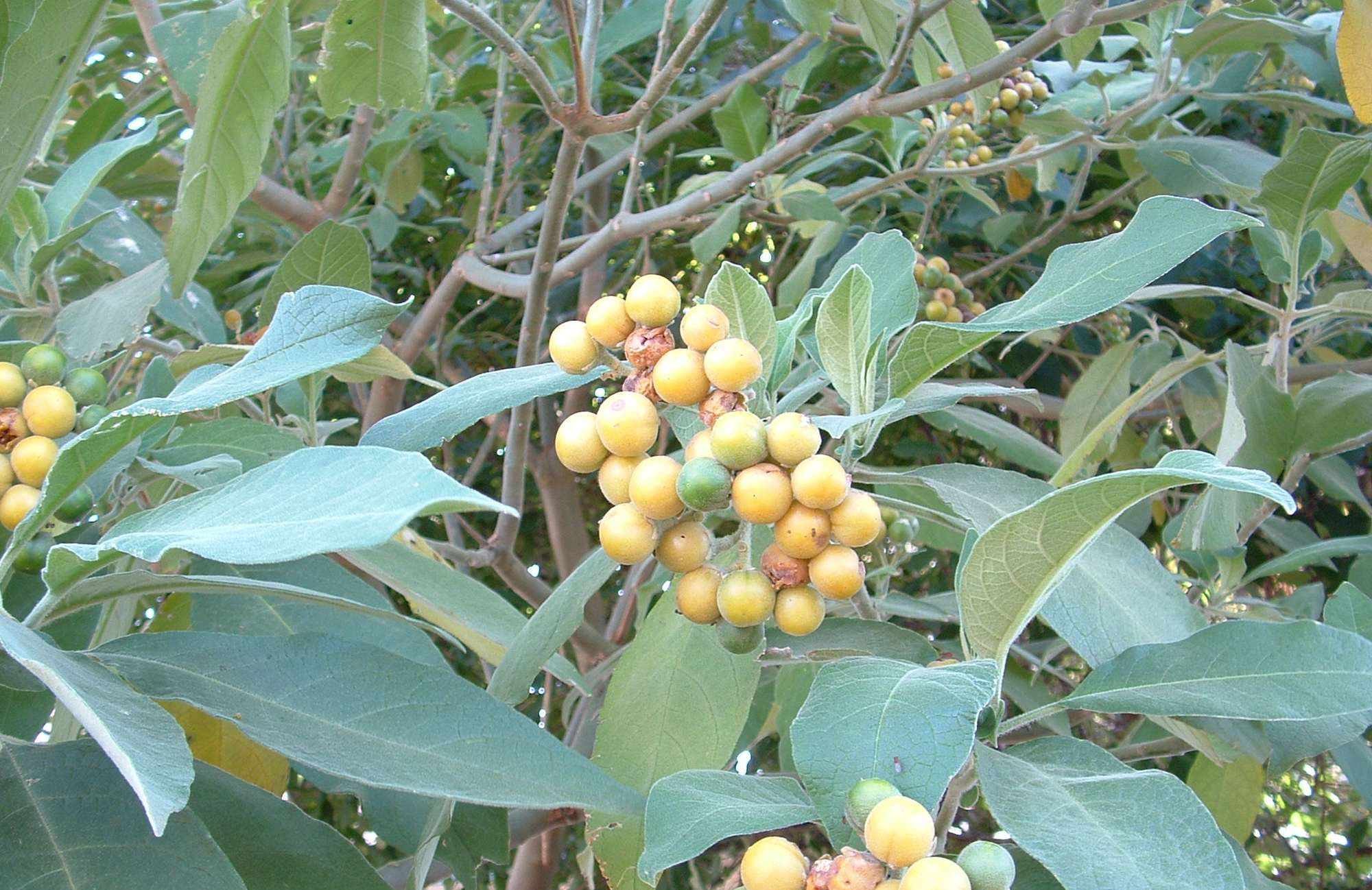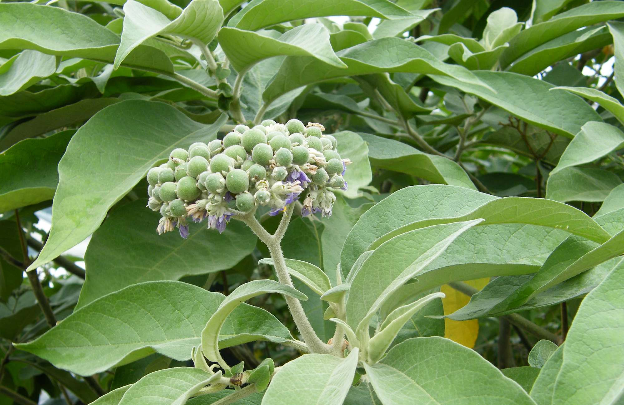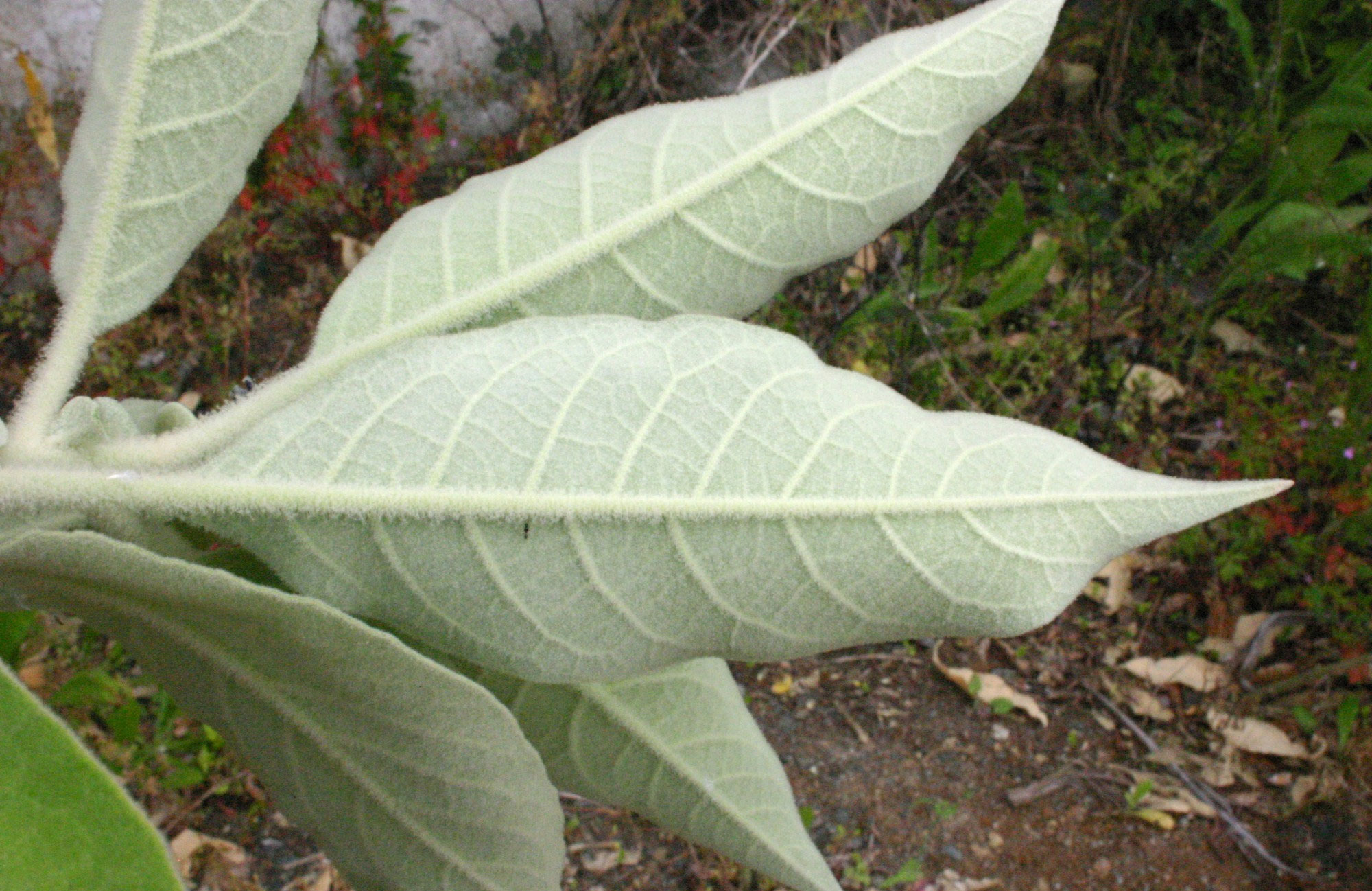 - Spreading, shrub or small tree to 10m tall, with all parts covered in dusty hairs, and whitish, branching, soft-woody stems.