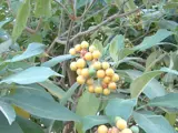- Dense clusters of mauve to purple flowers year-round, followed by clusters of round berries that ripen from green to dull yellow.