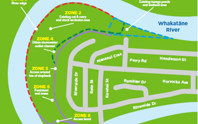 Regional Council is not involved in the planning or funding of recreational trails. Whakatāne District Council does promote the establishment of a recreational trail on the river bank/stopbank through its Active Whakatāne Strategy.