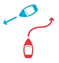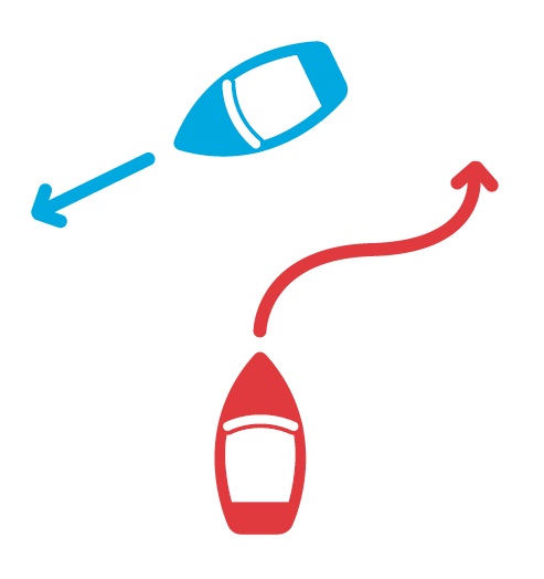Who gives way? When two boats are approaching each other, one has the right of way. The ‘give way’ rules depend on what type of boat you’re on and the type of boat you’re approaching.