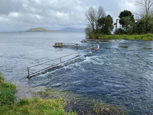 The water from Lake Rotorua flows out through the Ōhau Channel and stop-logs were removed in early June to allow more water to flow out of the lake.